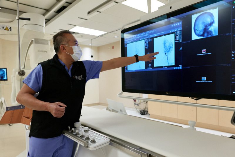 The suite includes new imaging equipment that allows interventional radiology teams to better understand what is happening in a patient’s arteries, veins, blood vessels and organs following a stroke or due to other injury or illness. The benefits include higher resolution and image quality, more flexibility, and a significant reduction in radiation exposure to both patients and staff during procedures.